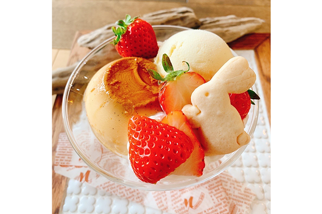 国産原料100%のきび砂糖を使用。優しい甘さで、卵の味が濃厚。きび糖シロップをお好みでかけて。