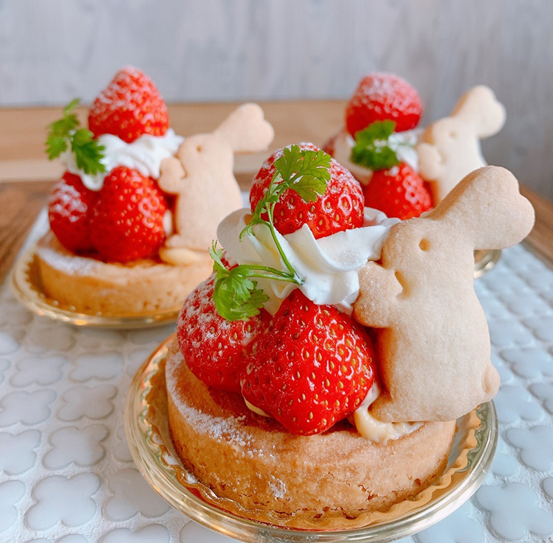 (カフェオレ・瓶入りジュースは+430円) - いちごタルト540円(税込)